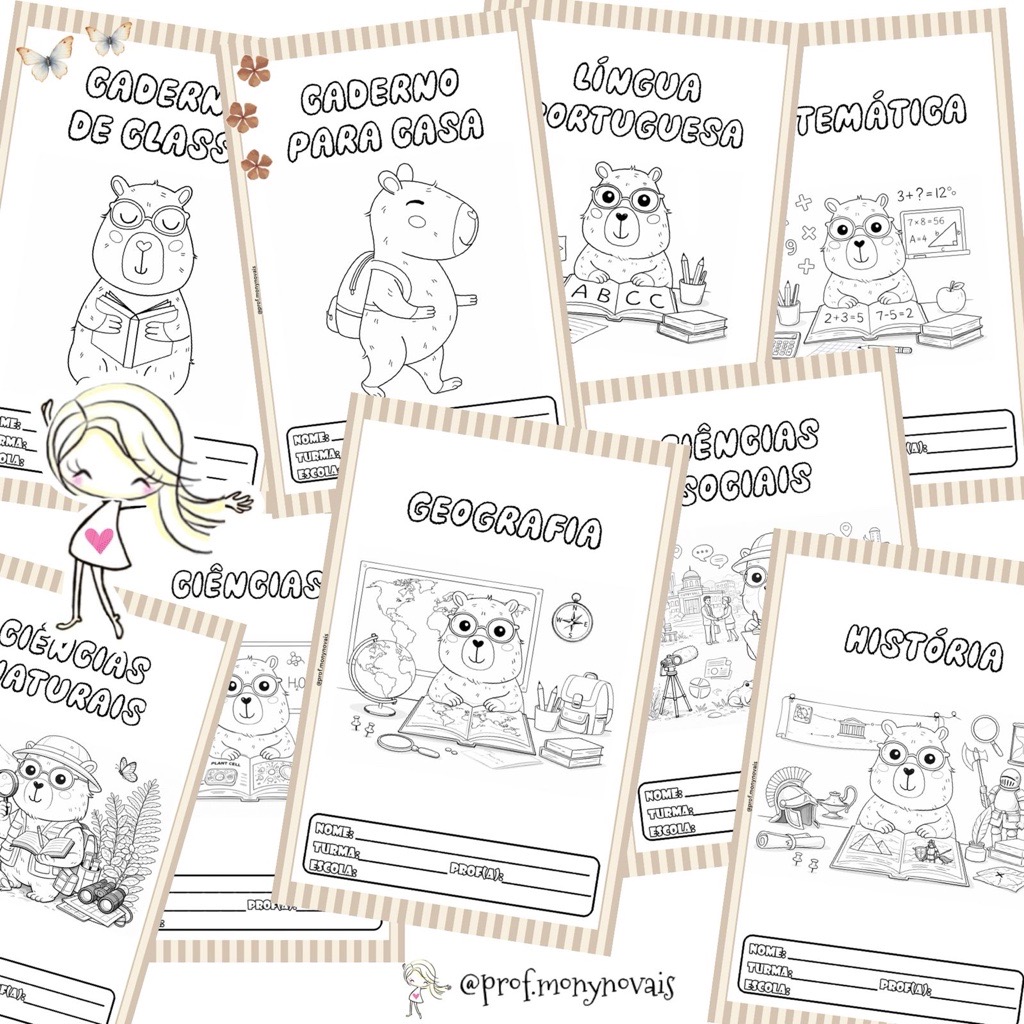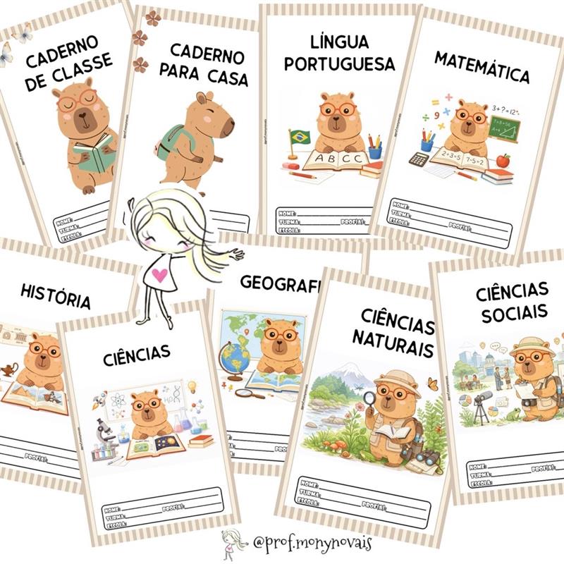 ✔️ Capas para: caderno de classe, caderno para casa, Língua Portuguesa, Matemática, História, Geografia, Ciências, Ciências Naturais e Ciências Sociais